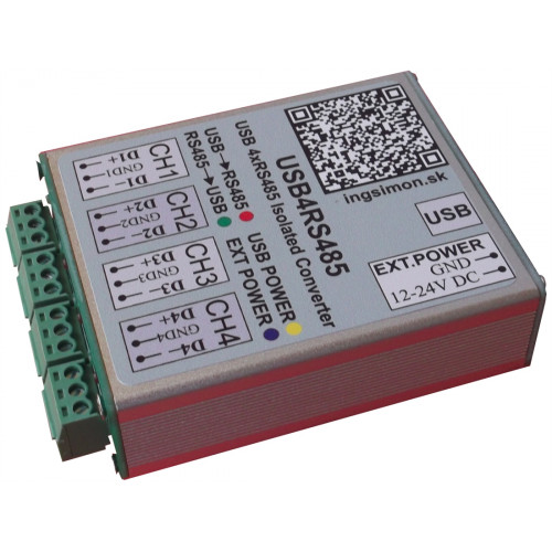 USB4RS485 je štvorkanálový prevodník medzi rozhraním USB a RS485 s galvanickým oddelením každej linky samostatne. Galvanické oddelenie je riešené galvanicky oddeleným meničom napájania pre každú linku a s optočlenmi pre komunikačné signály.